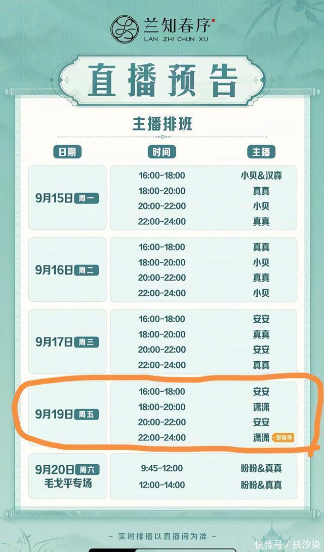 按上周日发布的本周排班表,今号下点原本应该是安安在“兰知春序直播间”开播的,但却突然临时换成了传熙上播。正当直播间的朋友们都感到奇怪时,传熙也及时给大家做了解释,原来安安下午突然身体不舒服生病去医院了,于是临时把传熙叫过来救场顶班了。